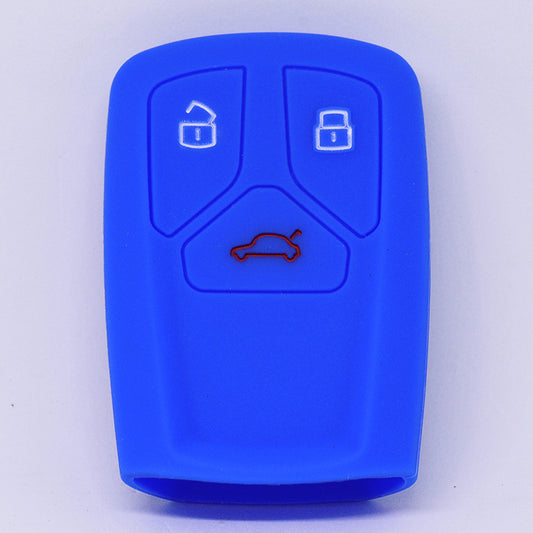 Auto Schlüssel Hülle Silikon Schutz Cover Blau kompatibel mit Audi A4 S4 Q7 Q5 TT RS A5 S5 3 Tasten KEYLESS SMARTKEY