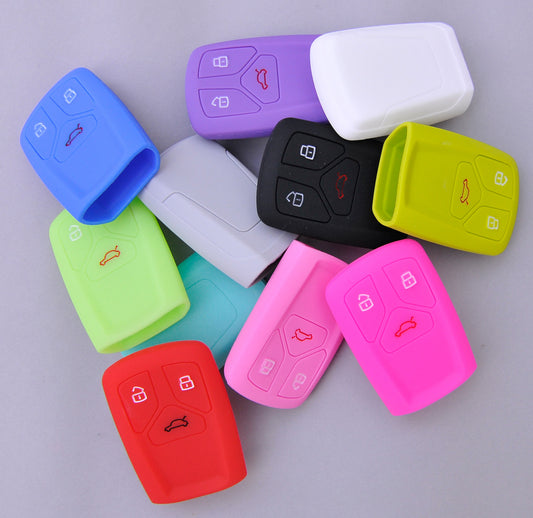 Auto Schlüssel Hülle Silikon Schutz Cover Lila kompatibel mit Audi A5 S5 A4 S4 Q3 Q5 A6 S6 R8 TT 3 Tasten KEYLESS SMARTKEY