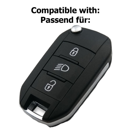 Auto Schlüssel Hülle Silikon Schutz Cover Blau kompatibel mit Peugeot 208 301 308 508 5008 2008 Expert Citroen C3 C4 Spacetourer Traveller 3 Tasten Klappschlüssel