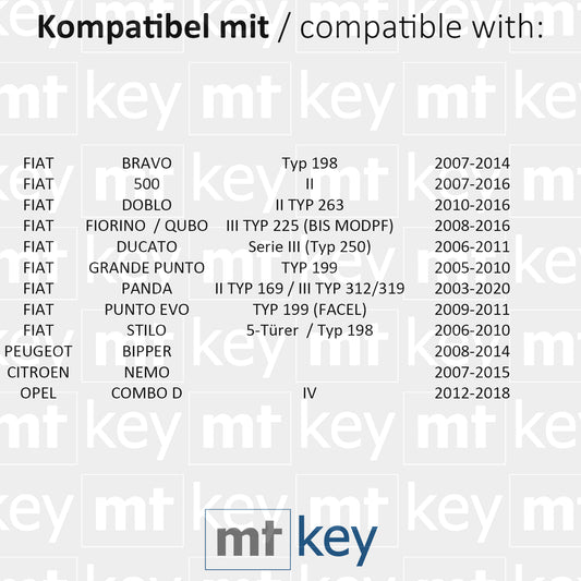 MT-KEY Funk Schlüssel 434MHZ kompatibel mit Citroen Nemo Fiat 500 Bravo Doblo II Ducato III Fiorino Qubo Grande Punto Panda Evo Stilo Opel Combo D IV Peugeot