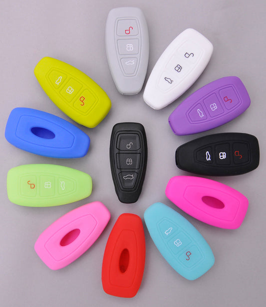 Auto Schlüssel Hülle Silikon Schutz Cover Blau kompatibel mit Ford C-Max S-Max B-Max Galaxy Focus Mondeo Fiesta Kuga 3 Tasten KEYLESS SMARTKEY