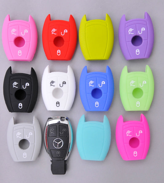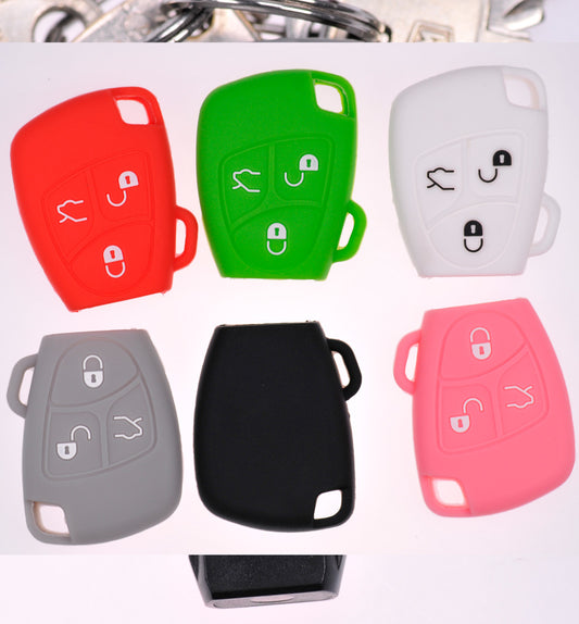 Auto Schlüssel Silikon Schutz Hülle Rosa kompatibel mit Mercedes Benz W169 A B C CL CLK E M R S SL SLK Klasse 3 Tasten SMARTKEY