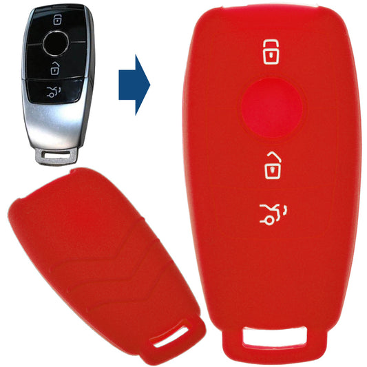 Auto Schlüssel Silikon Schutz Hülle Rot kompatibel mit Mercedes Benz E-Klasse W213 3 Tasten KEYLESS SMARTKEY