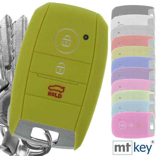 Auto Schlüssel Silikon Schutz Hülle + Schlüsselband Grün Kompatibel mit KIA Picantio Rio Ceed Soul Sportage Stonic 3 Tasten KEYLESS SMARTKEY
