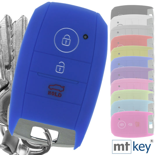 Auto Schlüssel Silikon Schutz Hülle + Schlüsselband Blau Kompatibel mit KIA Picantio Rio Ceed Soul Sportage Stonic 3 Tasten KEYLESS SMARTKEY