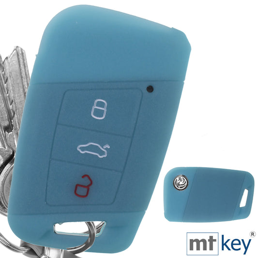 Auto Schlüssel Silikon Schutz Hülle + Schlüsselband Fluoreszierend Blau Kompatibel mit VW Passat B8 Arteon Skoda Kodiaq 3 Tasten KEYLESS SMARTKEY