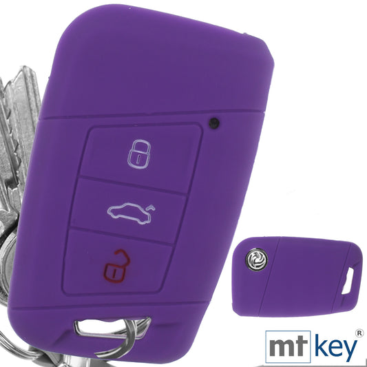 Auto Schlüssel Silikon Schutz Hülle + Schlüsselband Lila Kompatibel mit VW Passat B8 Arteon Skoda Kodiaq 3 Tasten KEYLESS SMARTKEY