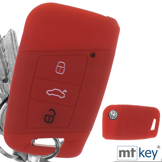 Auto Schlüssel Silikon Schutz Hülle + Schlüsselband Rot Kompatibel mit VW Passat B8 Arteon Skoda Kodiaq 3 Tasten KEYLESS SMARTKEY