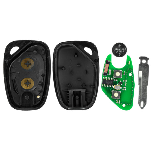 Auto Schlüssel Funk Fernbedienung 1x Gehäuse 2 Tasten + 2X Batteriespangen + 1x CR2016 Batterie kompatibel mit Renault/Dacia/Opel
