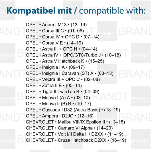 BRANDT Kennzeichenleuchten LED + Widerstand kompatibel mit Opel Adam 13-19 Ampera 12-16 Astra H J K Cascada 13-19 Corsa C D E Insignia A Meriva A B Tigra B TwinTop 04-09 Vectra C + OPC 02-08 Zafira B