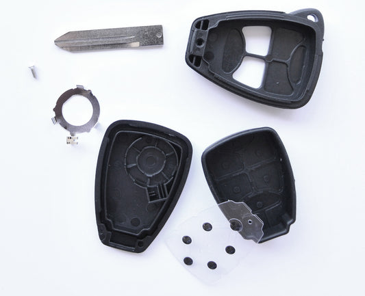 Auto Schlüssel Funk Fernbedienung 1x Gehäuse 2 Tasten 1x Rohling 1x CR2032 Batterie kompatibel mit Chrysler/Jeep Dodge
