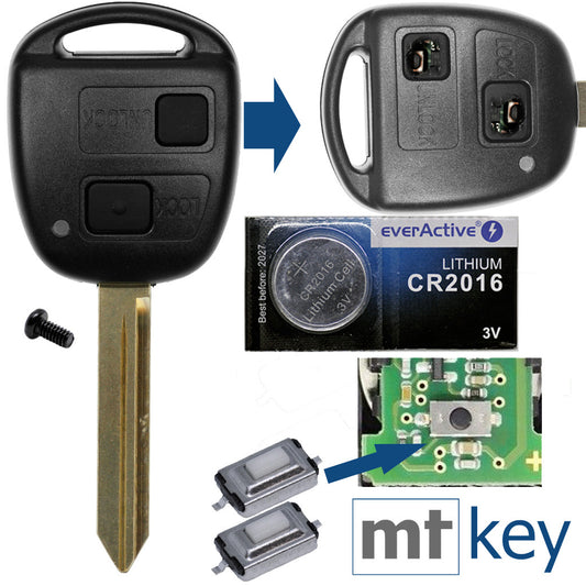 Auto Schlüssel Funk Fernbedienung 1x Gehäuse 2 Tasten TOY40 + 1x Tastenfeld + 2X Mikrotaster + 1x CR2016 Batterie kompatibel mit Toyota