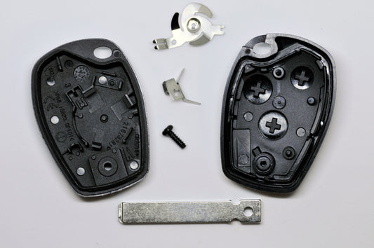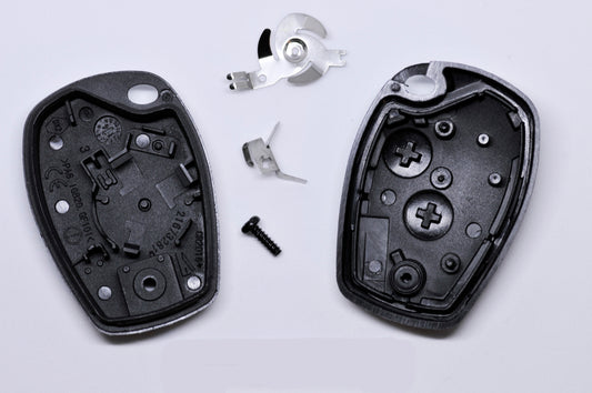 Auto Schlüssel Funk Fernbedienung 1x Gehäuse 2 Tasten + 2X Batteriespangen + 1x CR2016 Batterie kompatibel mit Renault/Dacia/Opel