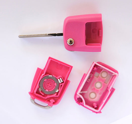 Auto Schlüssel Funk Fernbedienung 1x Gehäuse 3 Tasten Pink + 1x Rohling HA66 + 1x CR2032 Batterie kompatibel mit VW SEAT Skoda