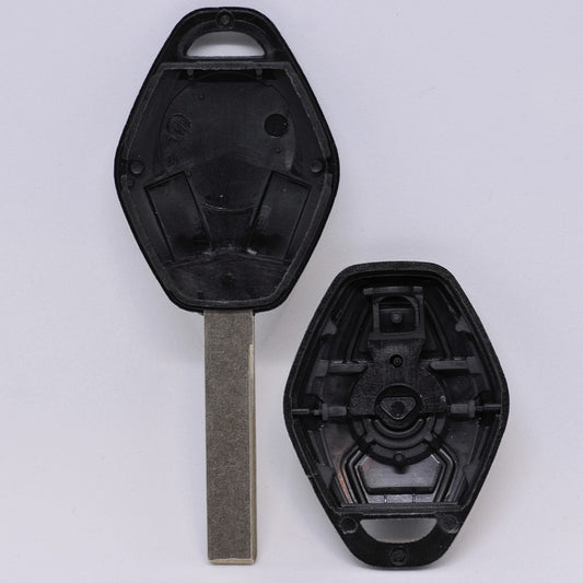 Auto Schlüssel Funk Fernbedienung 2X Gehäuse 3 Tasten + 2X fest eingegossener Rohling HU92 kompatibel mit BMW