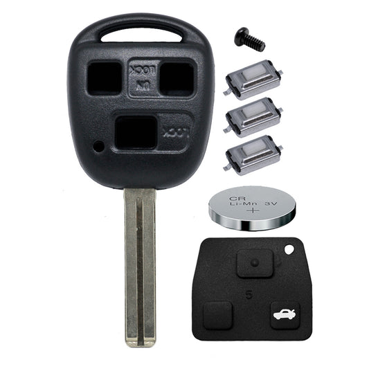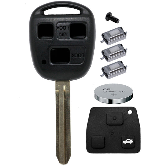 Auto Schlüssel Funk Fernbedienung 1x Gehäuse 3 Tasten TOY47 + 1x Tastenfeld + 3X Mikrotaster + 1x CR2016 Batterie kompatibel mit Toyota