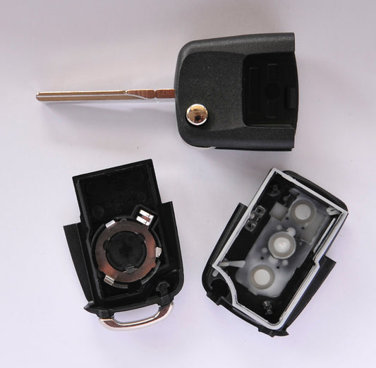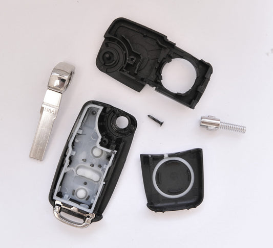 Auto Schlüssel Funk Fernbedienung 1x Klapp Umbau Gehäuse 3 Tasten + 1x Rohling HAA + 1x CR2032 Batterie kompatibel mit VW SEAT Skoda bis BJ. 11/2009