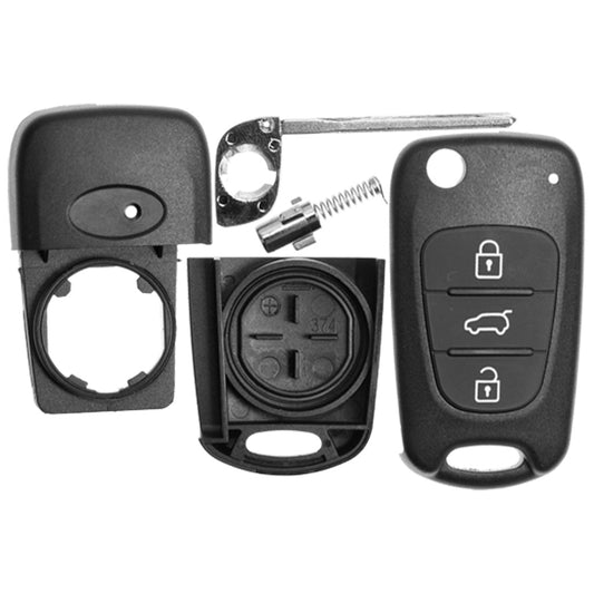 Autoschlüssel Funk Fernbedienung Austausch Gehäuse mit 3 Tasten + Rohling + Batterie kompatibel mit Hyundai i20 PB i30 FD Elantra ix20 JC ix35 Veloster