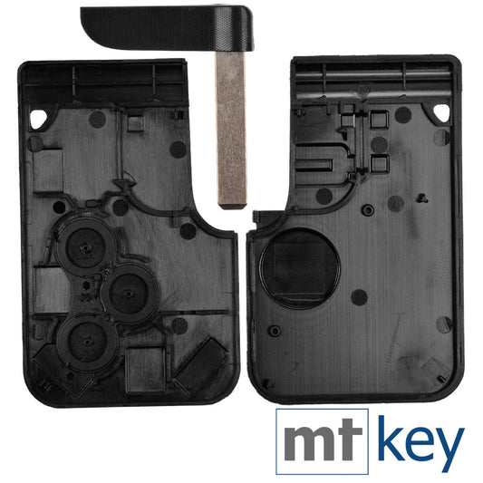 Autoschlüssel Karte Funk Fernbedienung Austausch Gehäuse mit 4 Tasten + Notschlüssel Rohling + Batterie kompatibel mit Renault Clio Captur Laguna III Koleos Megane Scenic III