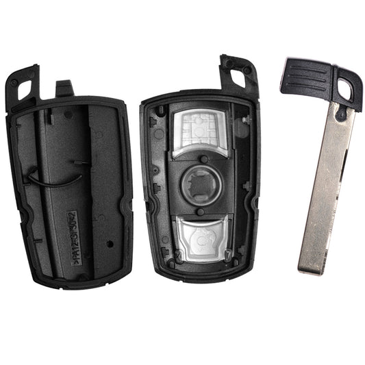 Autoschlüssel Funk Fernbedienung Austausch Gehäuse mit 3 Tasten + Notschlüssel Rohling + Akku kompatibel mit BMW E60 E90 E53 E87 E88 E81 E63 E61 E91 E93 E70