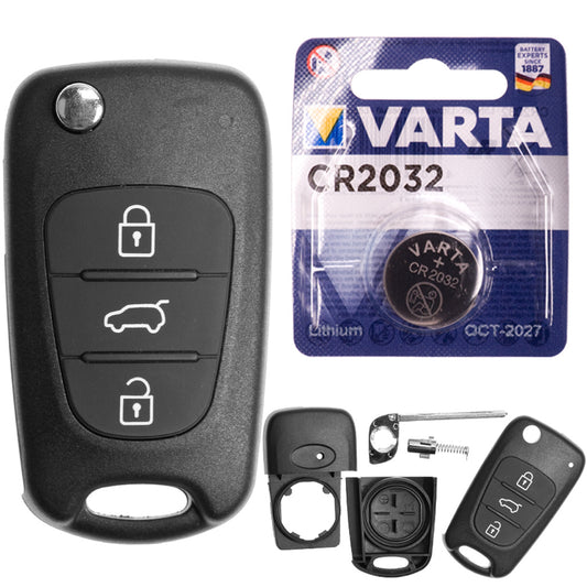 Autoschlüssel Funk Fernbedienung Austausch Gehäuse mit 3 Tasten + Rohling + Batterie kompatibel mit KIA Rio III Ceed I Sportage III Sorento II Soul I