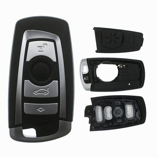 Auto Schlüssel Smartkey Funk Fernbedienung Sender 4 Tasten Gehäuse + Notschlüssel Rohling kompatibel mit BMW