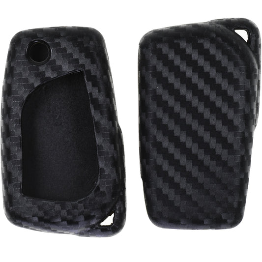 Auto Schlüssel Silikon Schutz Hülle im Carbon Look kompatibel mit Citroen C1 Peugeot 107 Toyota Aygo Auris Corolla Avensis Klappschlüssel