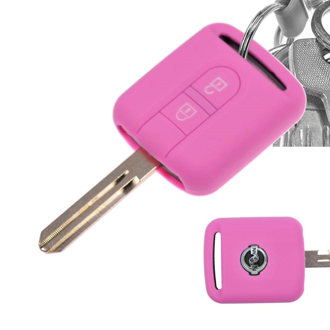 Auto Schlüssel Hülle Silikon Schutz Cover Rosa kompatibel mit Nissan Note Almera II X-Trail Qashqai Tiida Primera 2 Tasten Funk Fernbedienung
