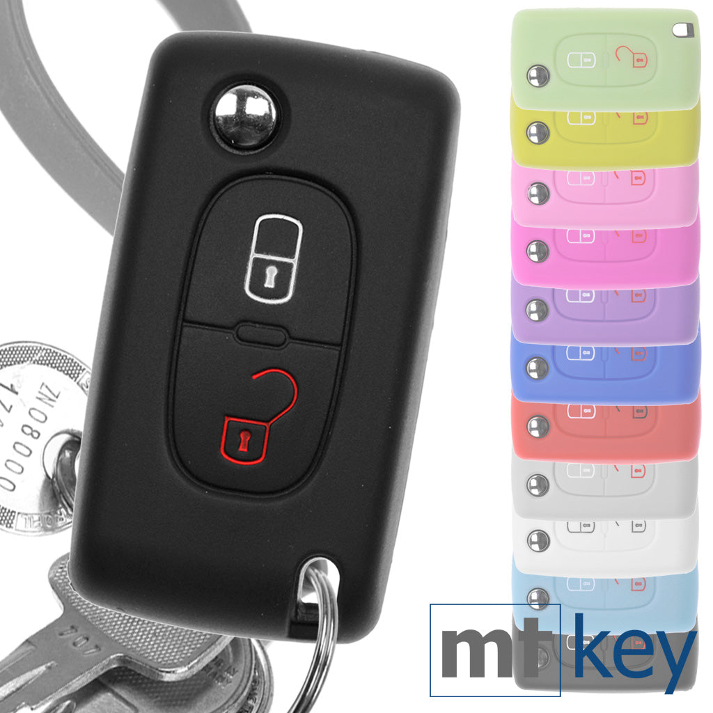 Auto Schlüssel Hülle Silikon Schutz Cover Schwarz kompatibel mit Citroen Berlingo C2 C3 Peugeot 207 307 308 2 Tasten Klappschlüssel