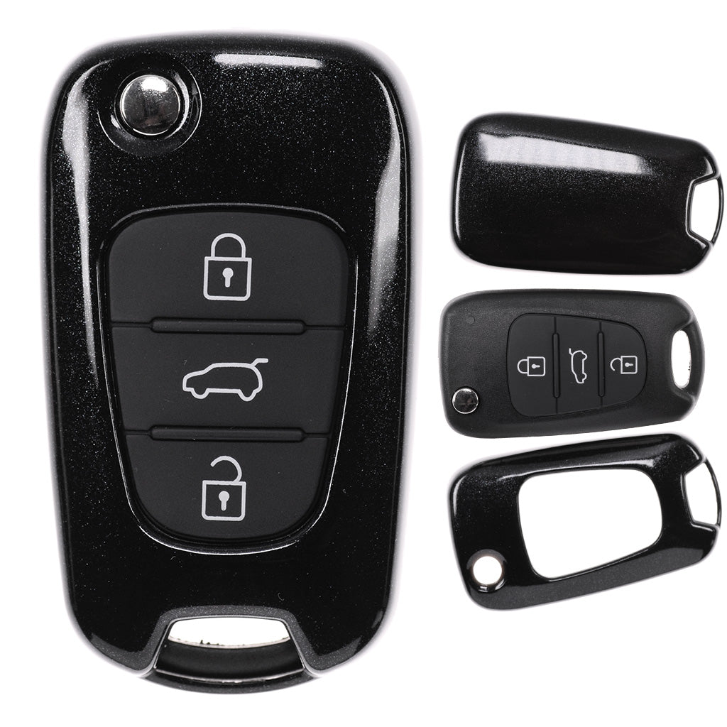Auto Schlüssel Kunststoff Hülle ABS Plastik Schutz Cover Schwarz kompatibel mit Hyundai i30 ix20 ix35 Kia Soul Sportage Ceed Klappschlüssel