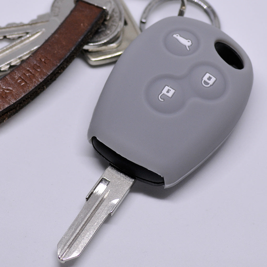 Auto Schlüssel Silikon Schutz Hülle Grau kompatibel mit Dacia DOKKER SANDERO Duster LODGY Logan Renault CLIO TWINGO 3 Tasten Funk Fernbedienung