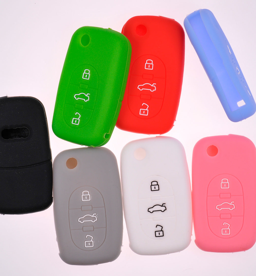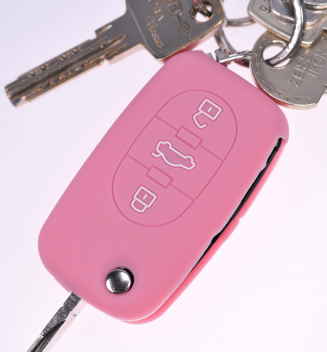 Auto Schlüssel Silikon Schutz Hülle Rosa kompatibel mit Audi A4 B6 A3 8L A6 C5 A2 K 3 Tasten Klappschlüssel