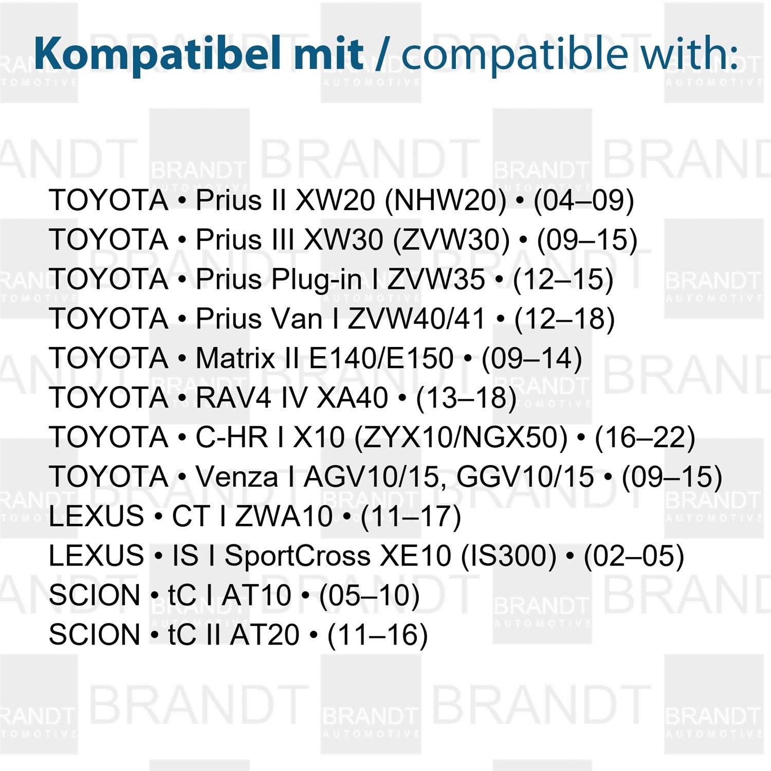BRANDT AUTOMOTIVE Kennzeichenleuchten LED kompatibel mit Toyota C-HR I 16-22 Matrix II Prius II III 04-15 Plug-in I 12-15 Van I 12-18 RAV4 IV XA40 13-18 Lexus CT I 11-17 IS I SportCross 02-05