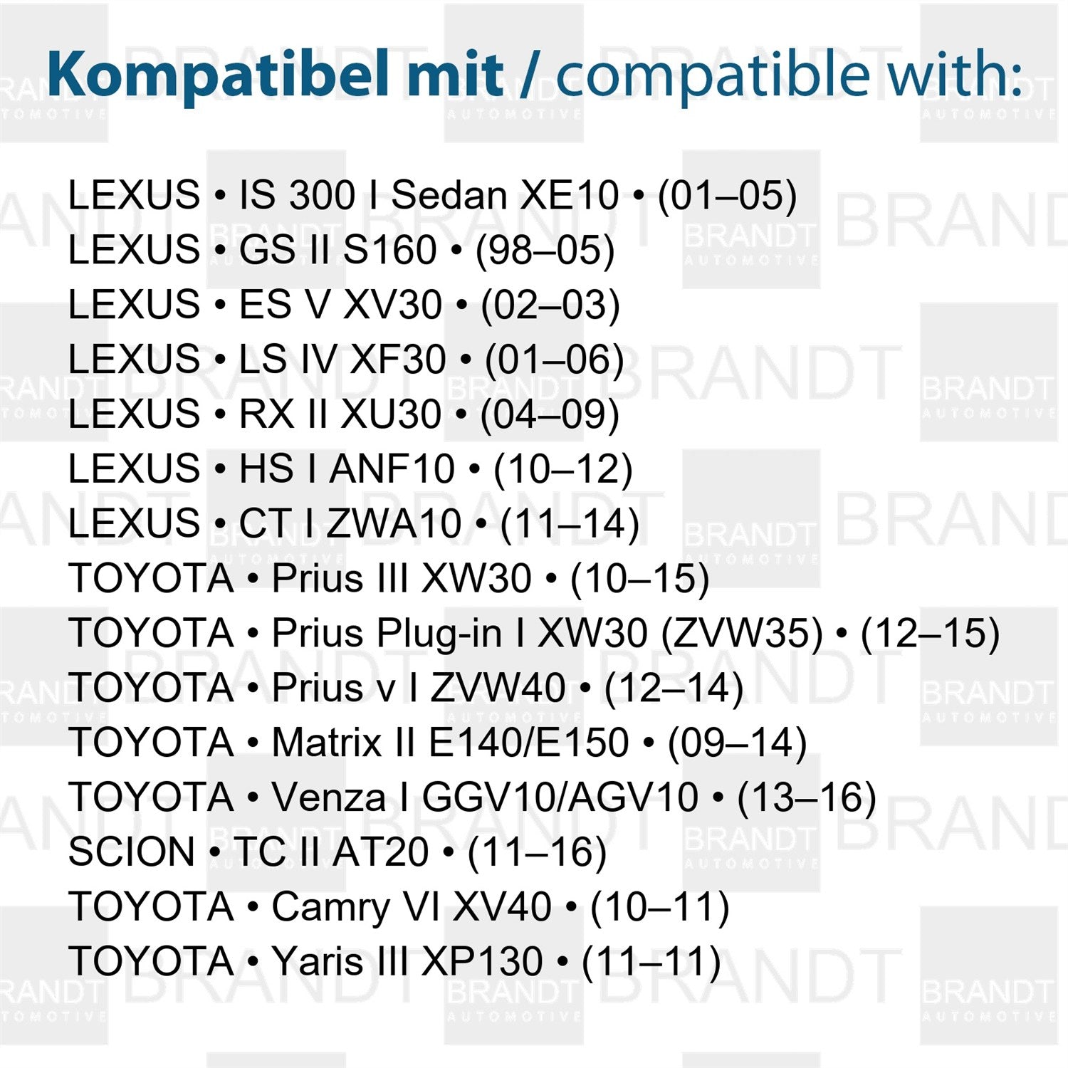 BRANDT AUTOMOTIVE Kennzeichenleuchten LED kompatibel mit Toyota Camry VI XV40 10-11 Matrix II 09-14 Prius III XW30 10-15 Prius Plug-in I 12-15 Prius V I 12-14 Venza I 13-16 Yaris III 11-11