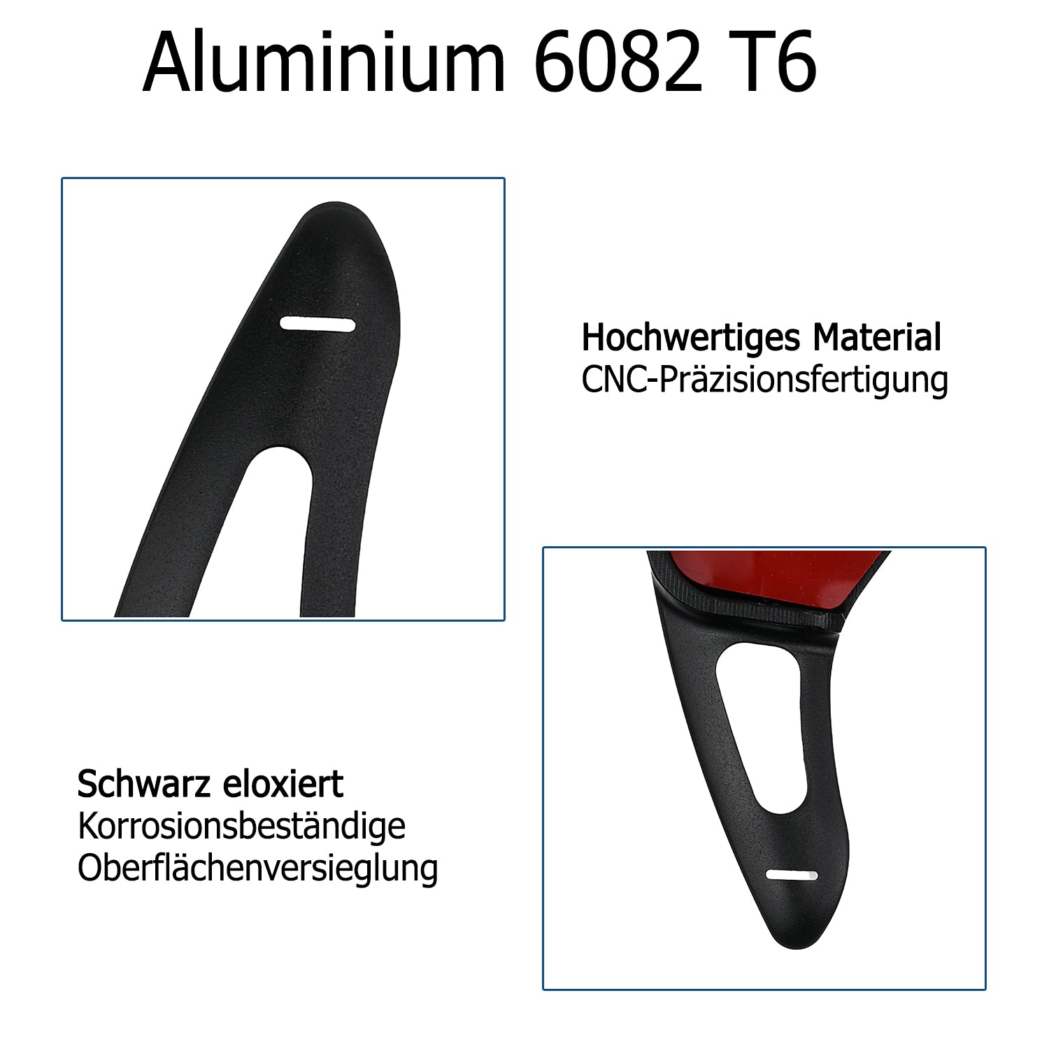 Schaltwippen-Verlängerungen aus CNC-gefrästem Flugzeugaluminium – ultraleicht, extrem stabil und mit edler eloxierter Oberfläche. Perfekte Passform für nahtlose Integration ins Lenkrad. Einfache Montage in Minuten (SIEHE "Montagehinweis")
