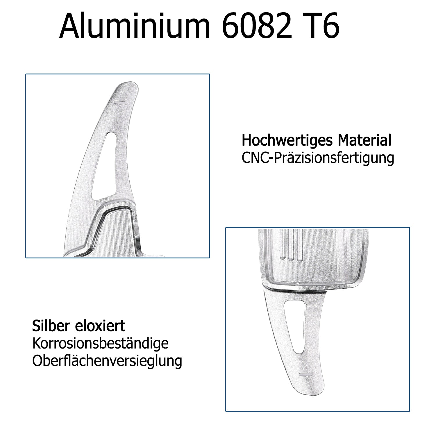 Schaltwippen-Verlängerungen aus CNC-gefrästem Flugzeugaluminium – ultraleicht, extrem stabil und mit edler eloxierter Oberfläche. Perfekte Passform für nahtlose Integration ins Lenkrad. Einfache Montage in Minuten (SIEHE "Montagehinweis")