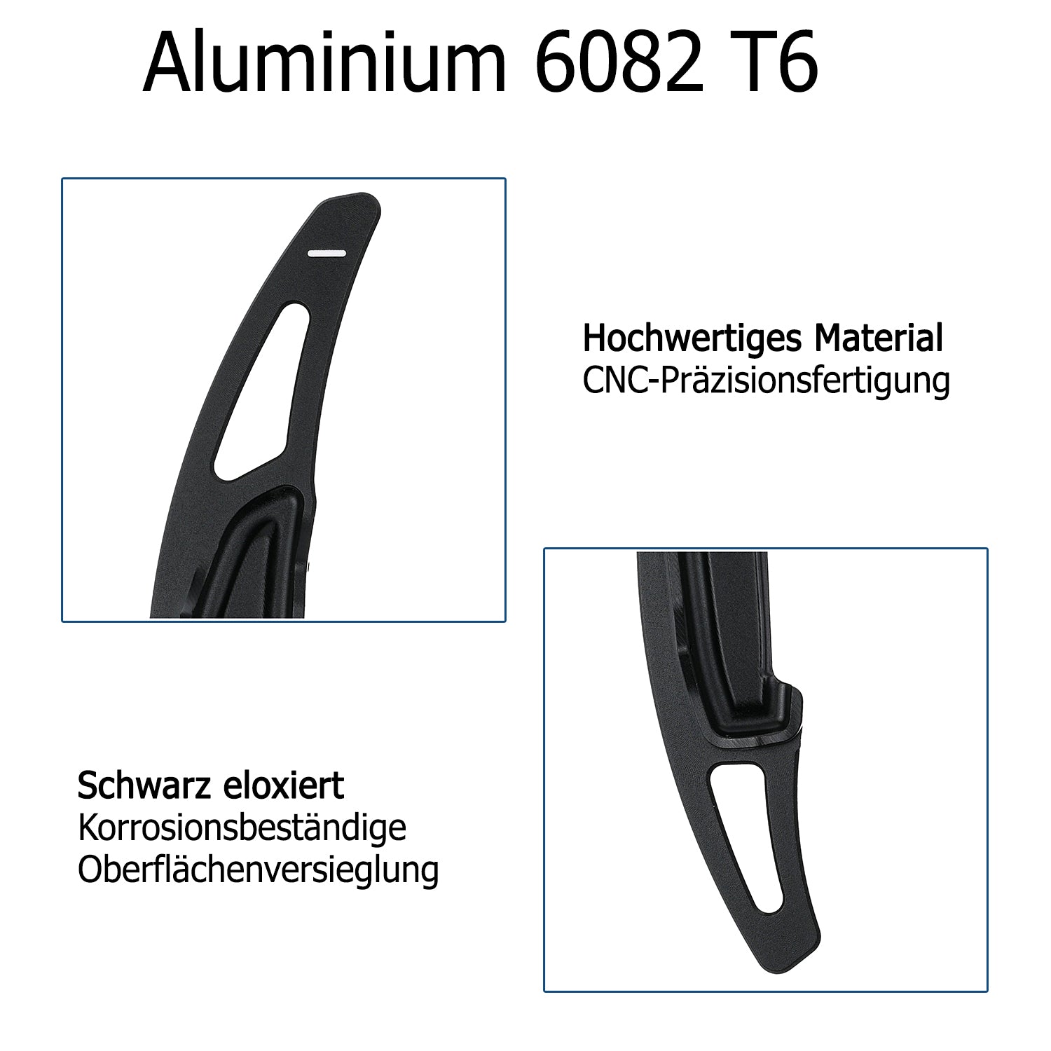 Schaltwippen-Verlängerungen aus CNC-gefrästem Flugzeugaluminium – ultraleicht, extrem stabil und mit edler eloxierter Oberfläche. Perfekte Passform für nahtlose Integration ins Lenkrad. Einfache Montage in Minuten (SIEHE "Montagehinweis")