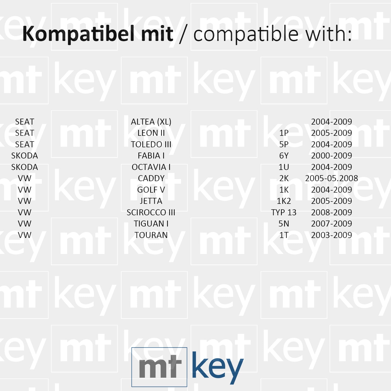 MT-KEY Funk Schlüssel 434MHZ ID48 kompatibel mit Seat Altea (XL) Leon 1P Toledo 5P Skoda Fabia 6Y Octavia 1U VW Caddy 2K Jetta 1K Golf 5 1K0959753G
