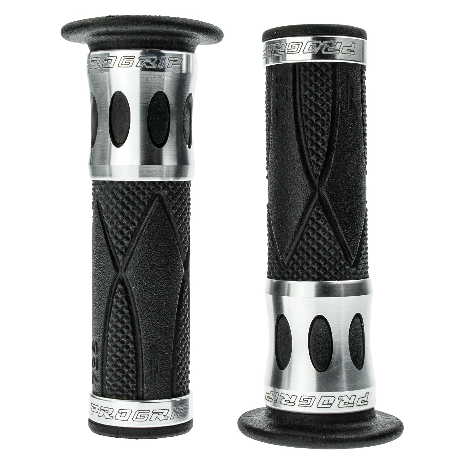 Progrip Griffgummi Lenkergriffe Handgriffe 728 Silber Schwarz Alu Gummi für Roller Motorrad Scooter 22mm 25mm